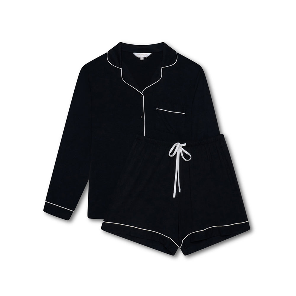This short set pyjama boasts a supple blend of super-soft modal jersey, which is our most effortlessly chic and comfortable set yet. Its slight oversized fit with a touch of stretch will be your go to favourite time and time again. It's so soft and light you'll believe you're sleeping in nothing this season!